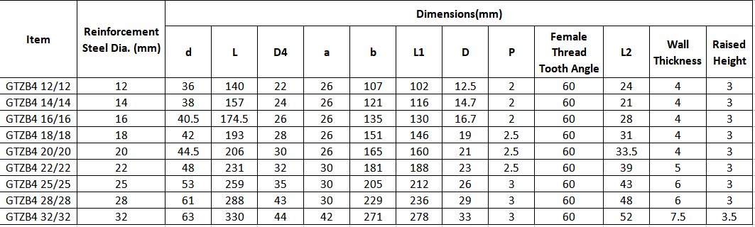 Втулка имеет полное разнообразие и спецификации, и может широко использоваться при продолжении стальных решетки φ12 ~ φ40 в строительстве, дорогах, мостах и других проектах.